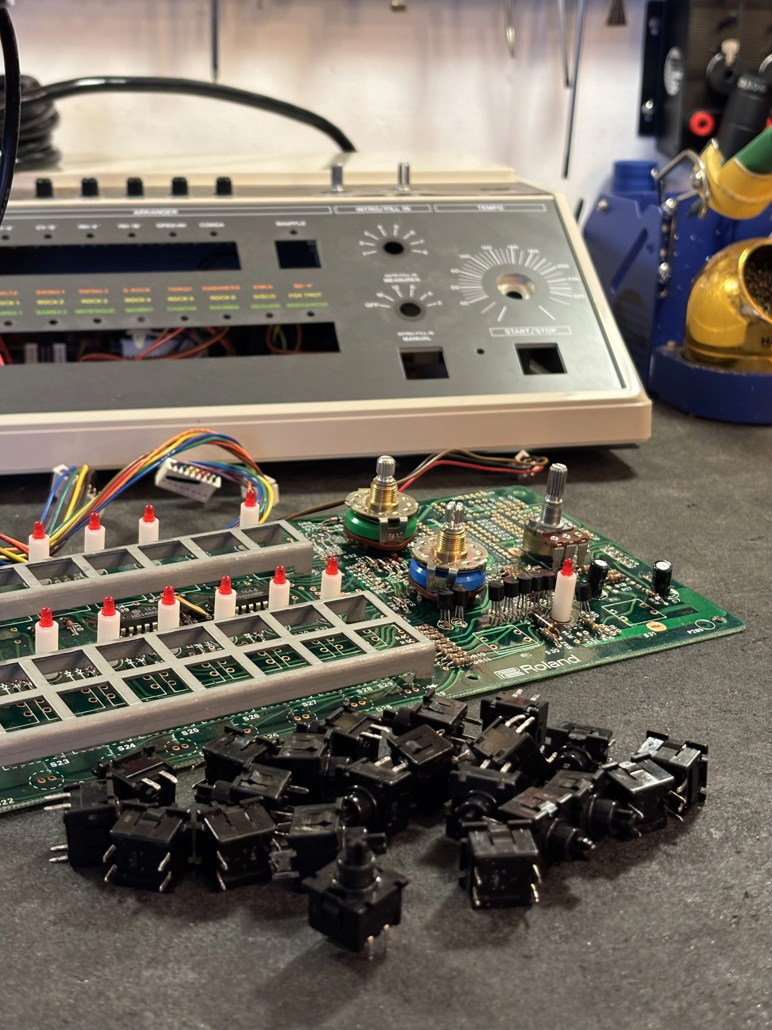 Most drum machines are a hybrid of digital and analog technology and require a broad skill-set and understanding to properly troubleshoot and maintain. We have been repairing and living with these machines for many years and have a strong familiarity with their function and typical failure points.